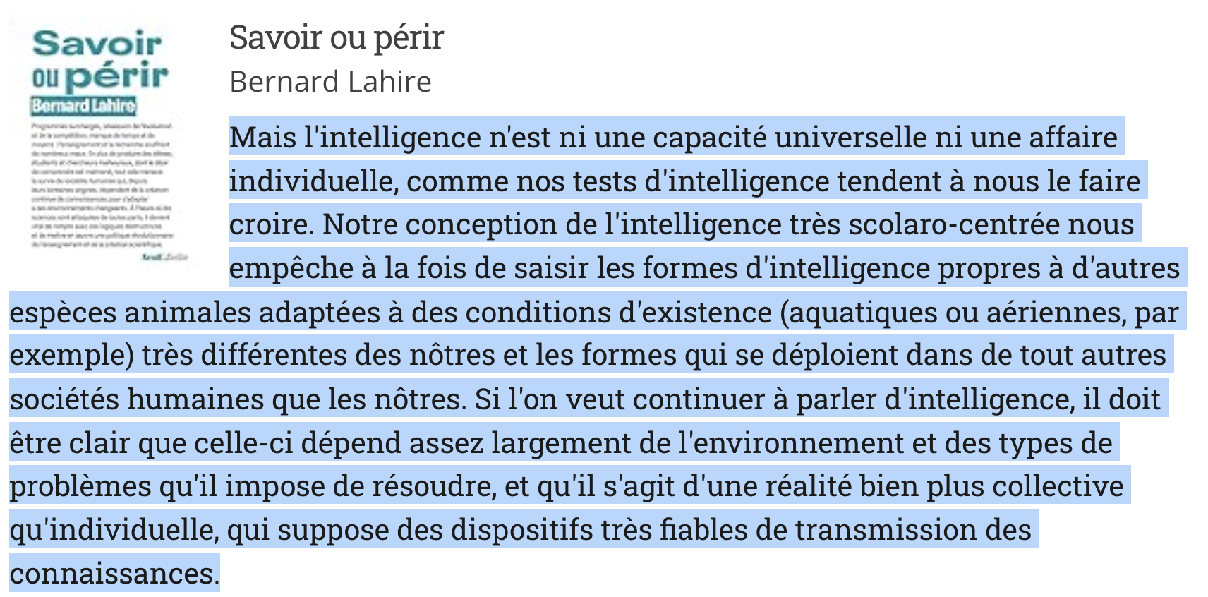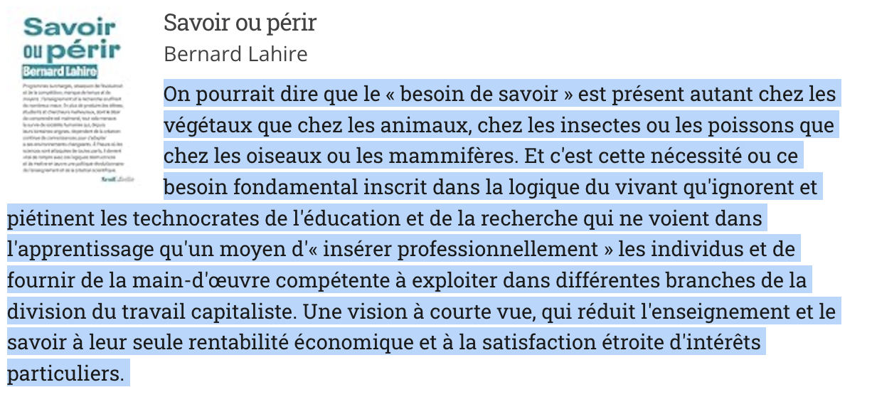 – L’article en accès libre de Café pédagogique.Des citations de l’auteur et/ou de l’ouvrage.