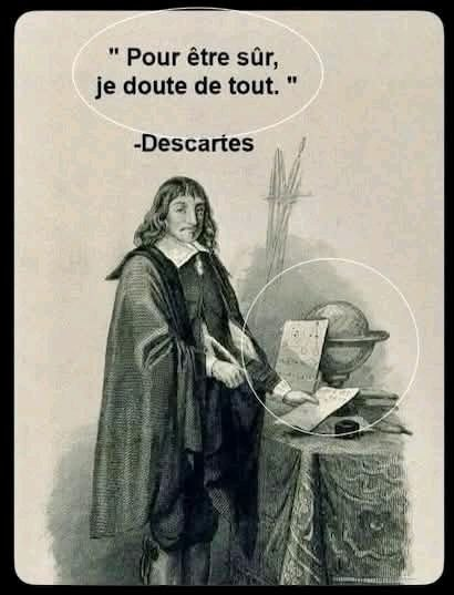 « Pour être sûr, je doute de tout ».Blague ironique à propos de Descartes.