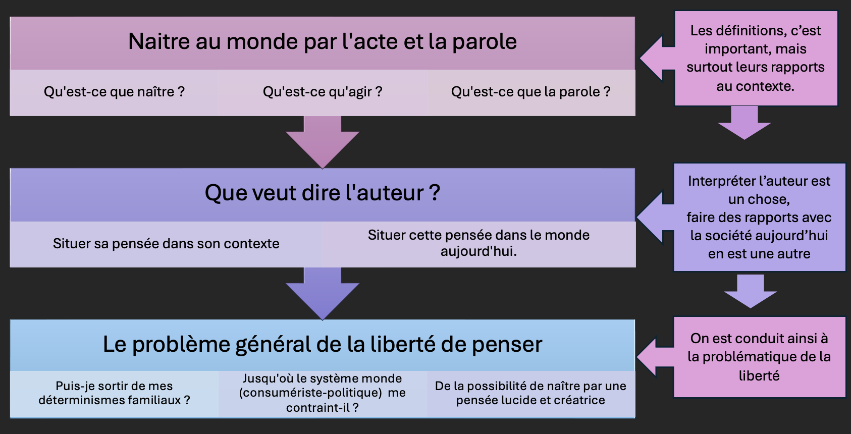 Merci à toi Pascal pour tes commentaires et pour ta participation à ce café philo… Nous avons effectivement à trouver un équilibre entre des interprétations personnelles, ce que dit effectivement l’auteur (approche académique), et la manière dont nous apprenons à faire philosophie dans un milieu ouvert et entre nous, où nous nous questionnons librement, tout en nous évertuant à rendre compte de notre pensée. 🙏